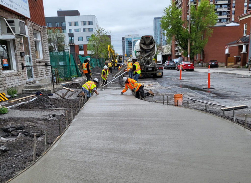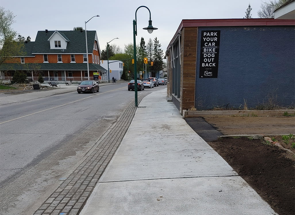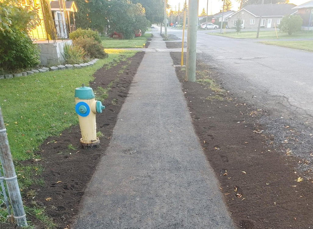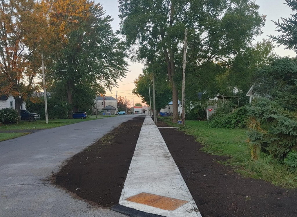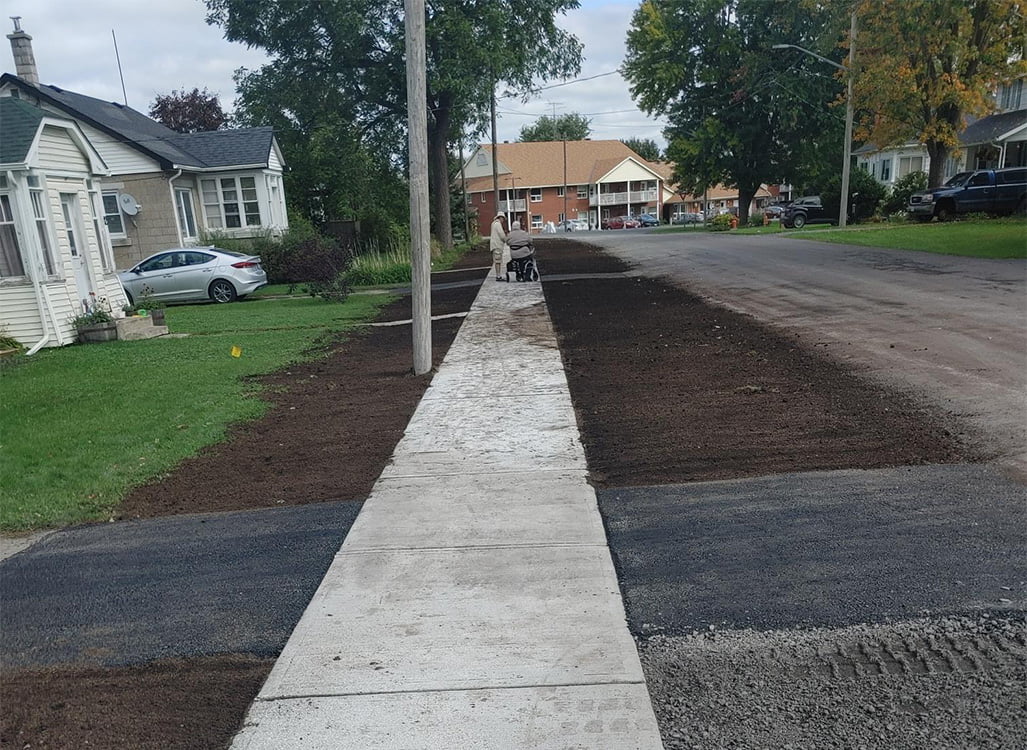 140 sq. m. of monolithic sidewalk on Augustus Ave. in Avonmore, including 2 TWSI plates and asphalt reinstatement