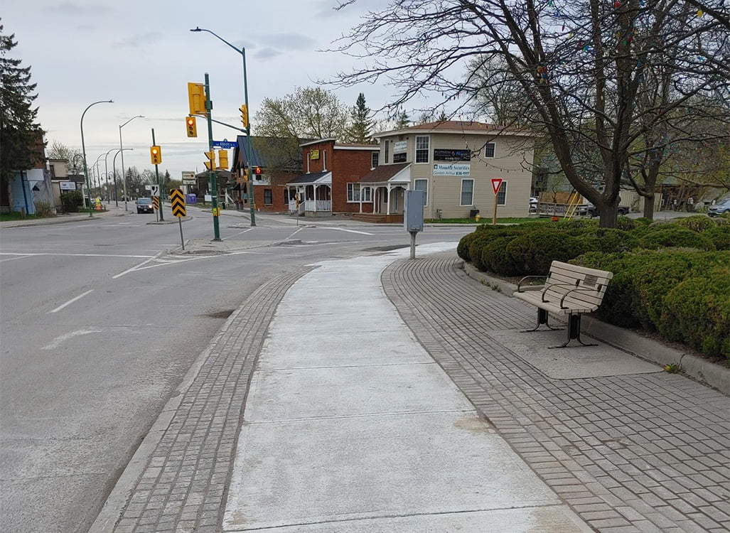 270 sq. m. of regular sidewalk on Church St. in Finch, including 4 TWSI plates
